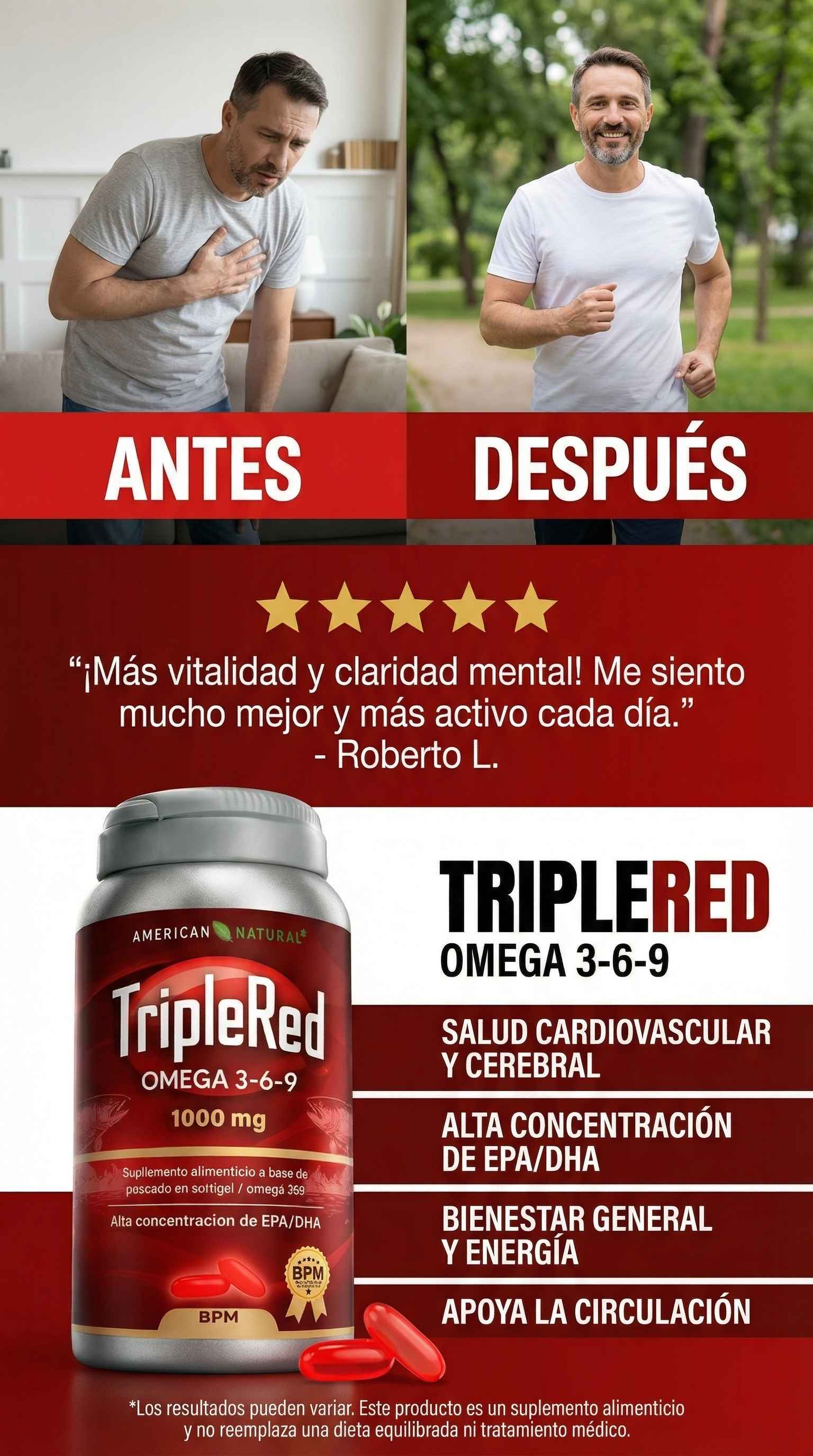 ✅Garantía de satisfacción: disfruta de TripleRed sin preocupaciones. Si no cumple tus expectativas, puedes devolverla y te reembolsaremos tu dinero.
