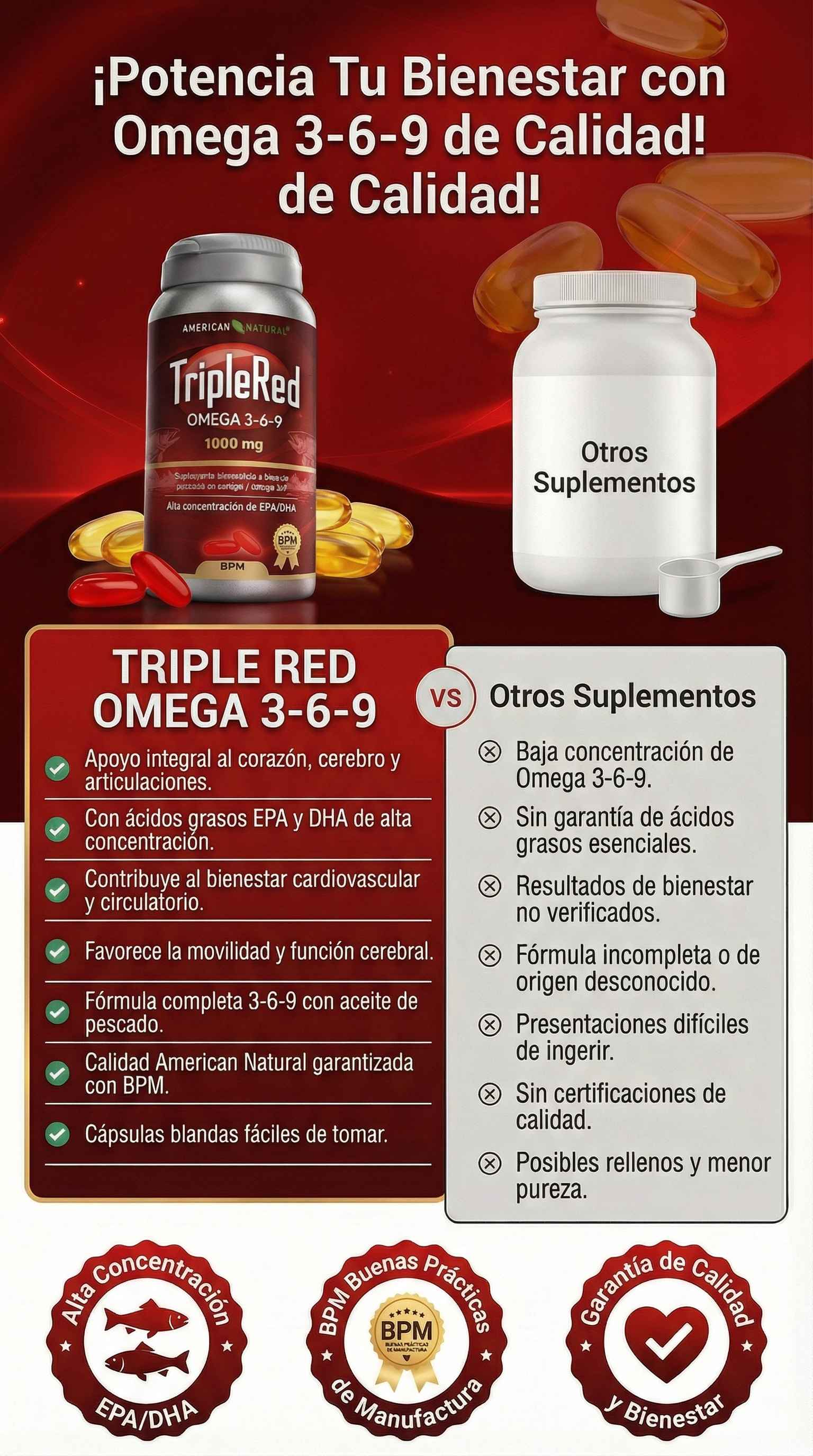✅Garantía del producto: disfruta de tu producto sin preocupaciones. Si tu frasco TripleRed presenta algún defecto de fábrica, pedido roto, incompleto, o destapado, dentro de los primeros 10 días, te la reemplazamos sin costo adicional.